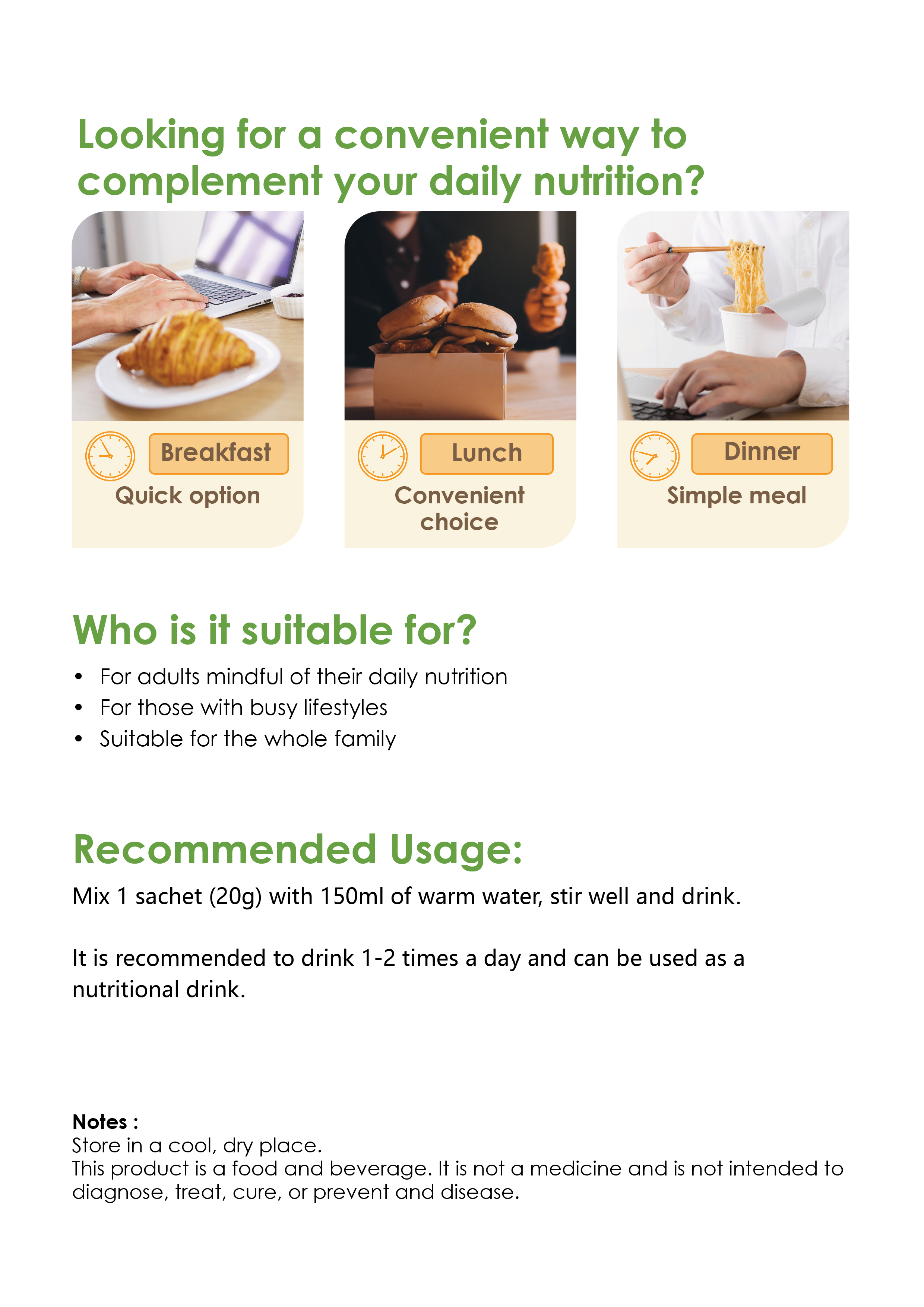 适合对象:一般保健者∣儿童、偏食者、老年人及工作繁重的人士